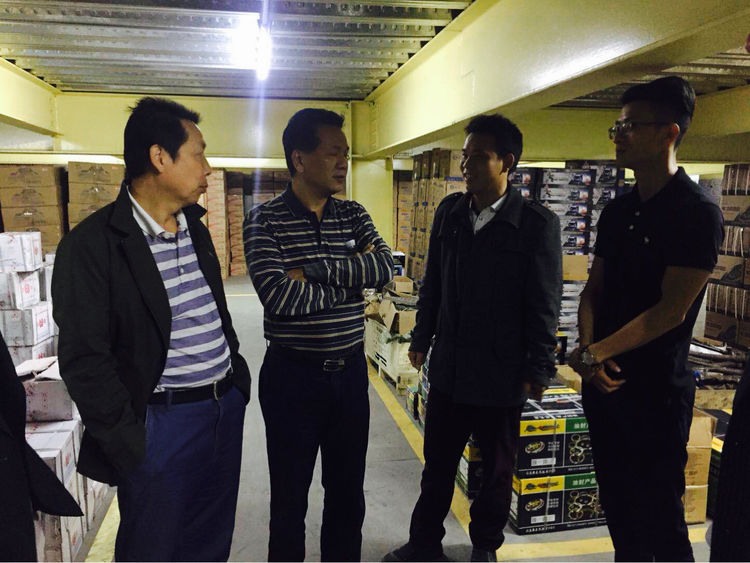 担保公司王治平董事长与海口加旺公司龚农董事长探讨海南当地菜价波动问题。