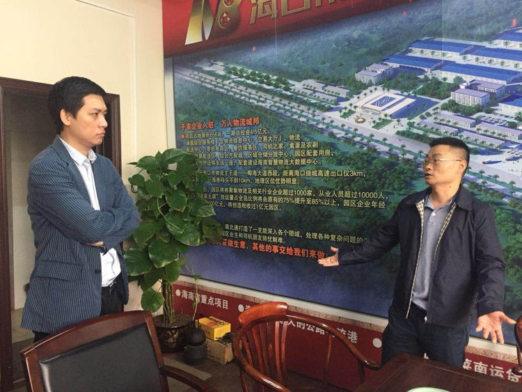 海口担保公司王治平董事长带队到海南南北通物流服务有限公司、海口加旺现代农业、海南闽泉山石业等公司调研