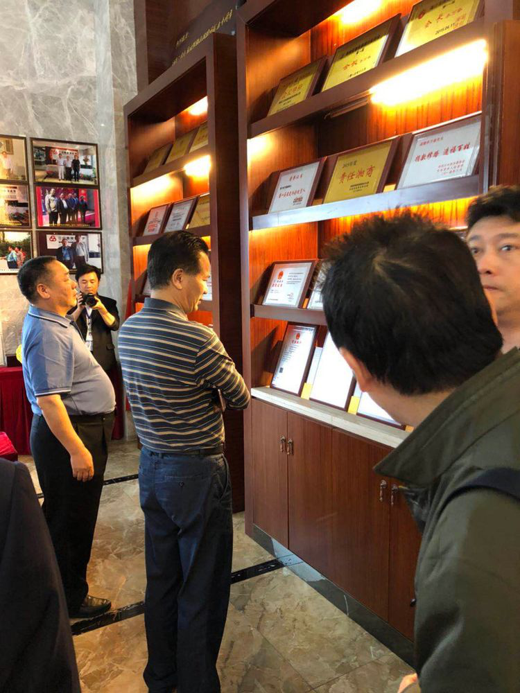 王董在三合泰企业荣誉墙前,对三合泰公司取得的成绩表达了肯定与赞扬。