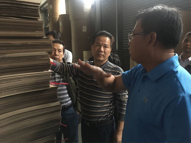 王董一行前往嘉昕纸箱工厂,听取企业负责人介绍企业发展情况。