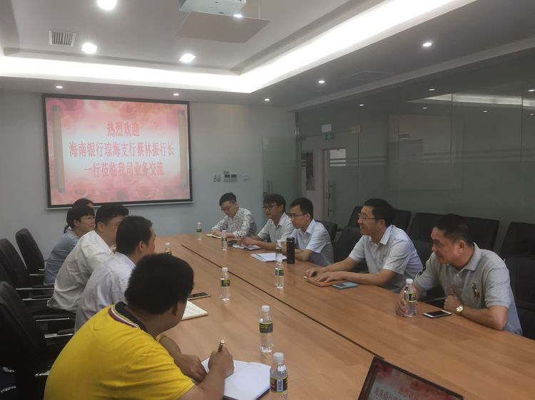 2018年5月22日上午,海口市担保投资有限公司许海果总经理、潘中连副总带队与来访的海南银行琼海支行许亚洲副行长及其业务部一行进行了座谈,双方就如何更好地开展琼海地区的业务等问题进行了深入交流。