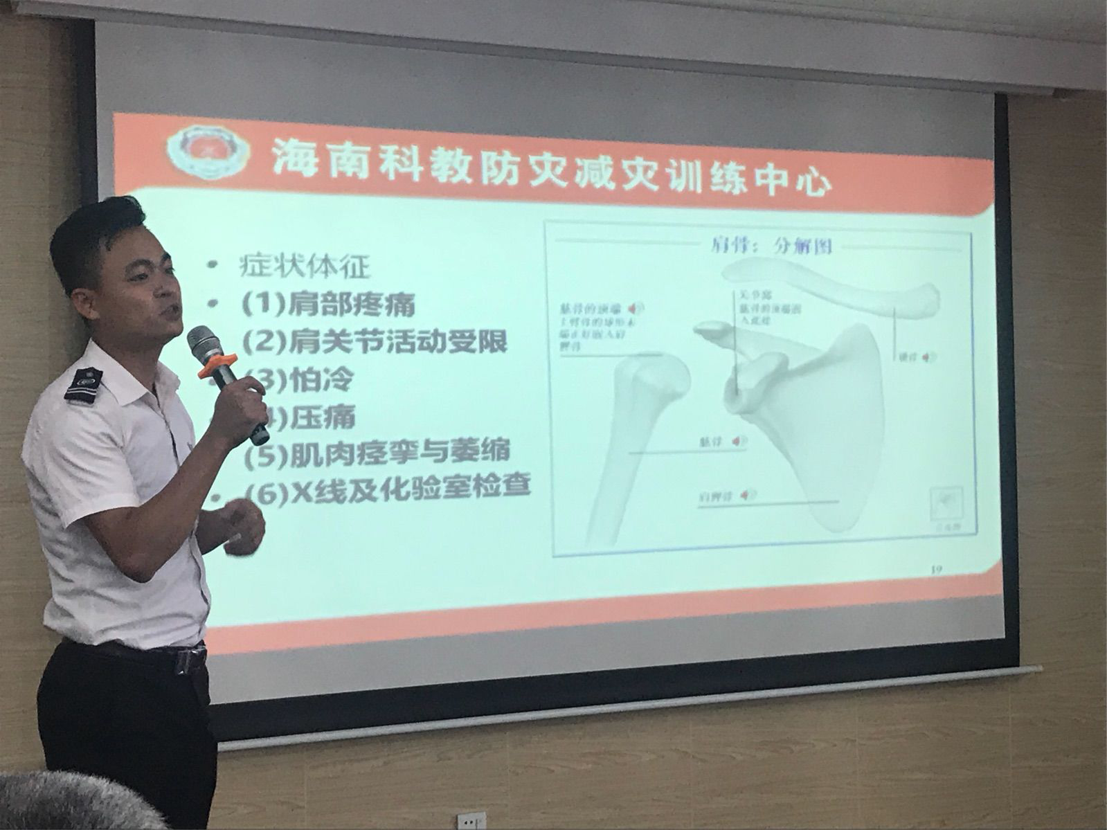 此次培训金控公司特邀海南普科防灾减灾公益宣传服务中心主讲教官陈建秋,为公司全体员工讲授职业疾病及慢性病(肩周炎、颈椎病等)的预防改善知识。主要内容有突发意外事故的自救与互救和办公室常见肩周炎颈椎病的防治。