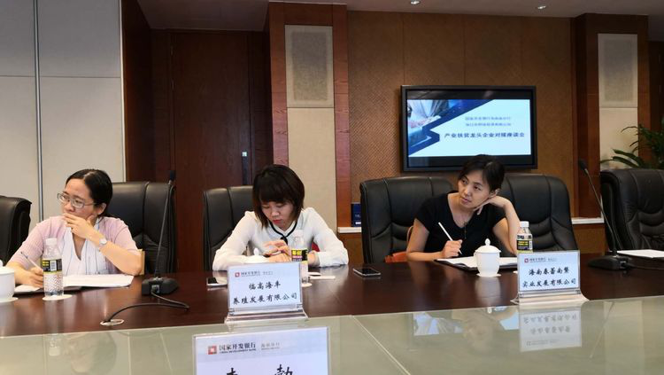 会上,受邀的海南广鑫牧业有限公司、海南水果岛农业开发有限公司等7家企业介绍了各自的经营情况、融资需求和扶贫经验。