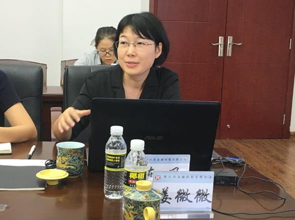 会上,海口担保公司副总经理陈风对公司基本情况、主要业务产品、内控管理、扶持政策等四个板块的内容作了详细的介绍,介绍过程中双方对一些细节问题进行了交流,如商票贷、顺位贷等业务创新、业务团队建设、业务评审机制、上级考核方式、海南省扶持政策等。