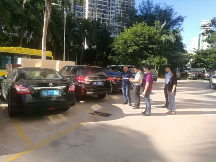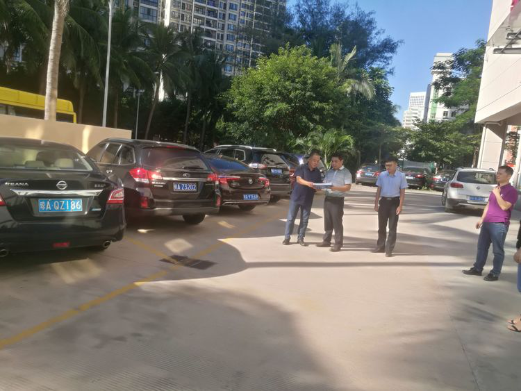 公司明察暗访小组工作人员现场核对公车存放情况
